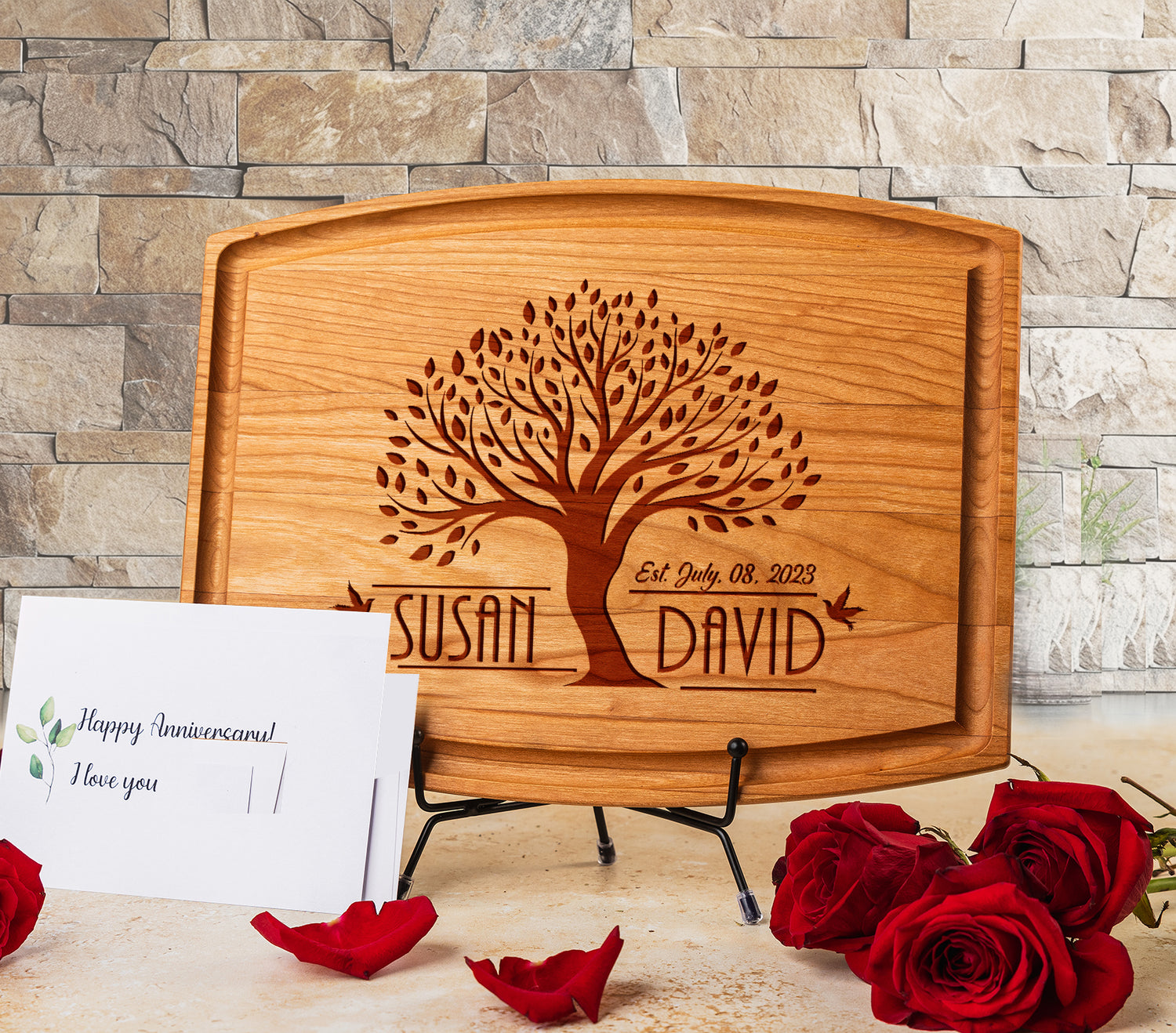 Celebrate your special day with a wedding anniversary cutting board that combines beauty and sentiment. Perfect for the couple who loves to cook or entertain