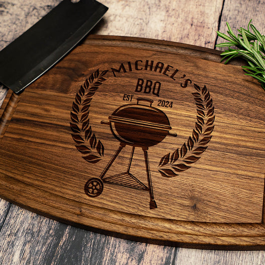 Personalized BBQ Cutting Board with Classic Grill Design - Father's Day gifts