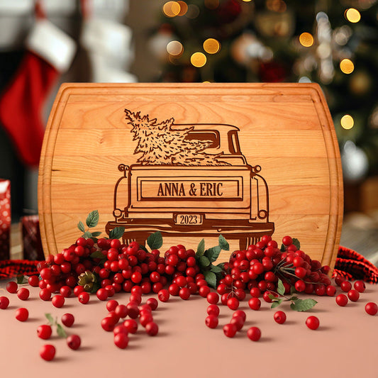 Festive Christmas Cutting Board with Vintage Truck and Family Name