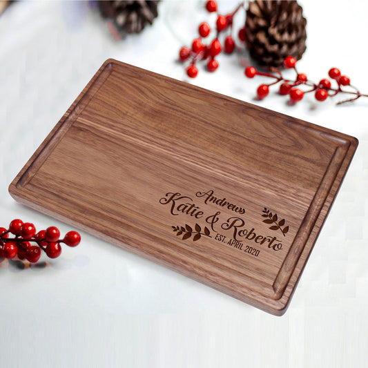 Custom Family Cutting Board with Leaf Motif and Established Year