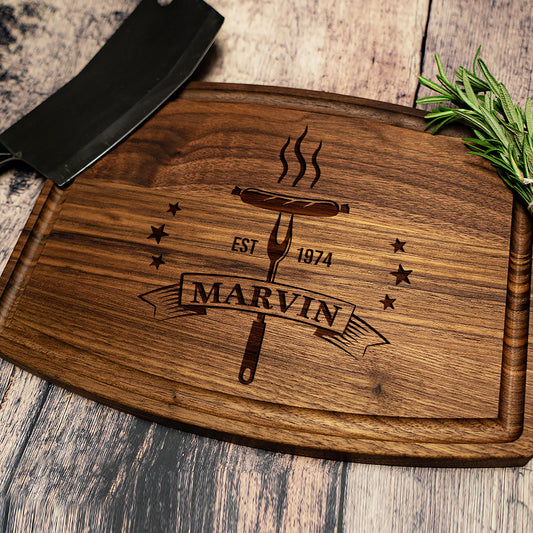 Personalized BBQ Cutting Board with Classic Grill Design - Father's Day gifts