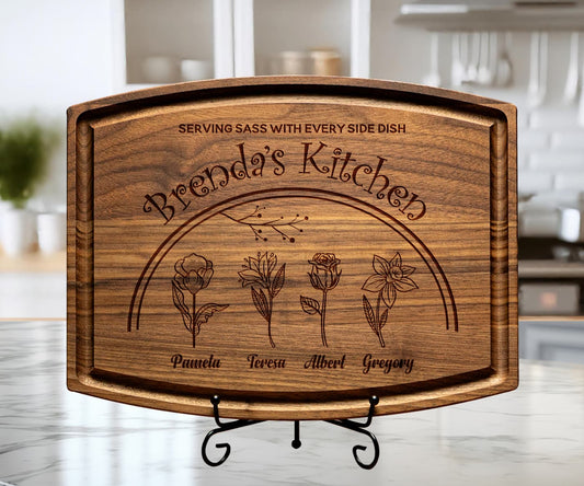 Personalized Birth Flower Cutting Board – Custom Gift for Mom or Grandma