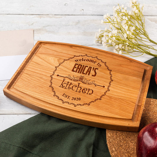 Personalized Kitchen Cutting Board with Vintage Welcome Design