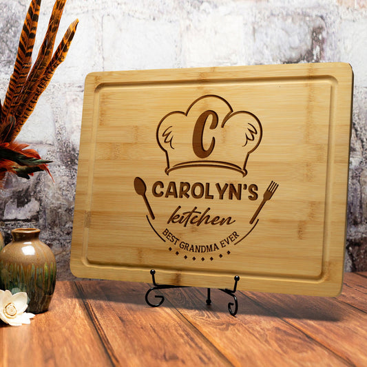 Personalized Kitchen Cutting Board with Chef Hat Design